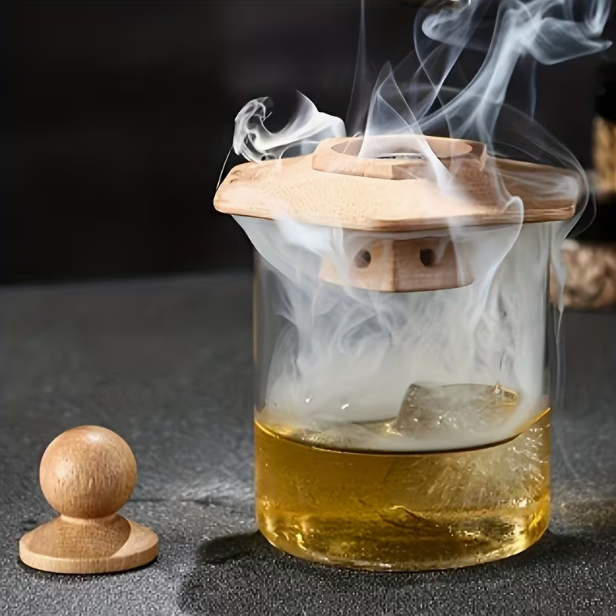 Kitul nostru include un coș de afumare pentru cocktailuri, un filtru din oțel inoxidabil, o perie de curățare și 4 cutii de rumeguș cu arome diferite – măr, cireș, stejar și nuc. Este ușor de transportat, astfel că poți crea băuturi afumate oricând și oriunde.